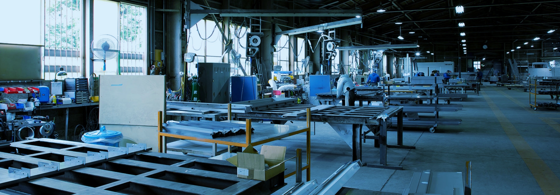様々なマシンを駆使して鋼板を加工。 微細な調整は職人の手で