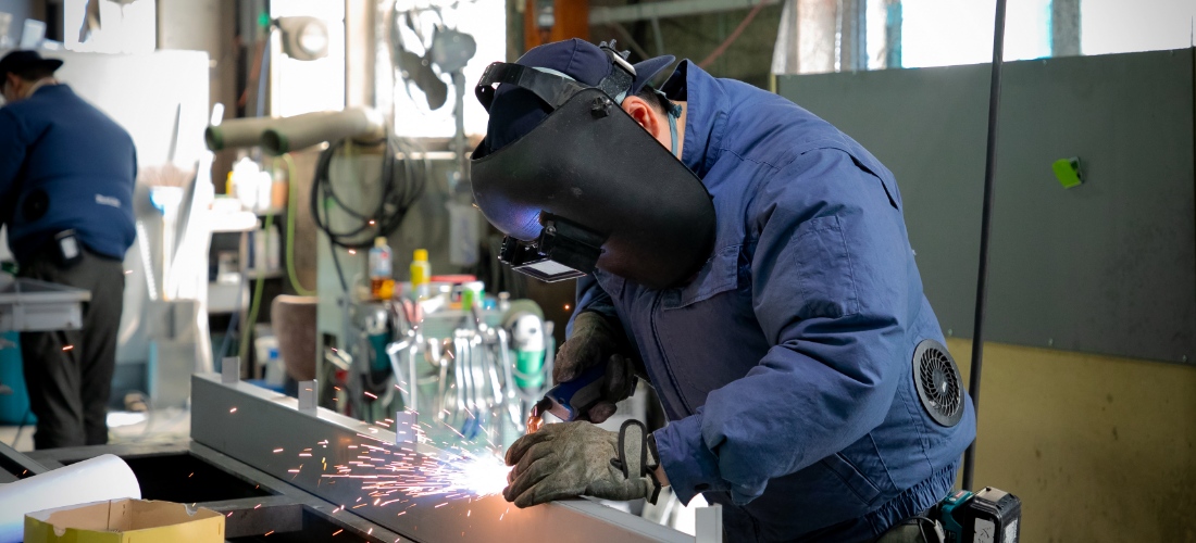 組立では、機械加工されたパーツを製作図面に基づいて組み立て、溶接やサンダーかけなどの仕上げ作業まで行います。数ミリのズレが製品の品質に大きな影響を与える可能性があるため、正確な作業が必要になります。
